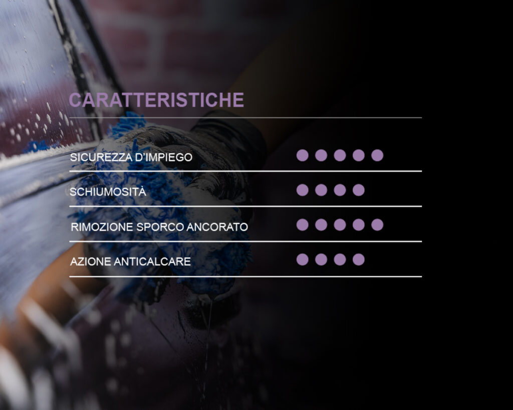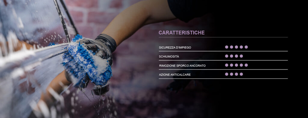 • Ideato per il lavaggio e la pulizia profonda e delicata ad azione decontaminante di auto nere o rivestite con pellicole adesive o PPF anche con finitura opaca;