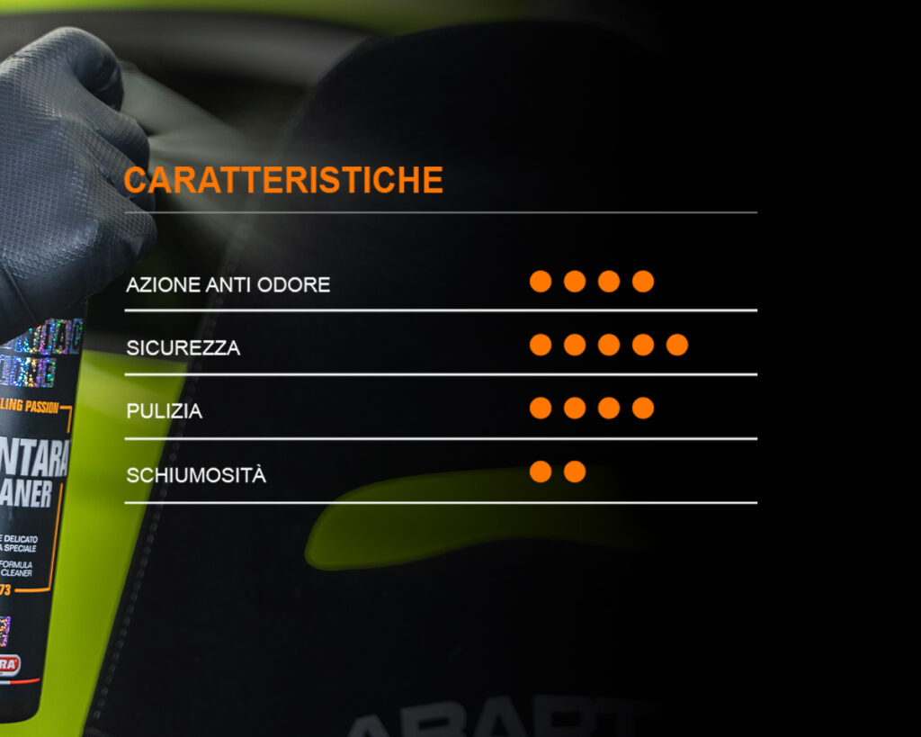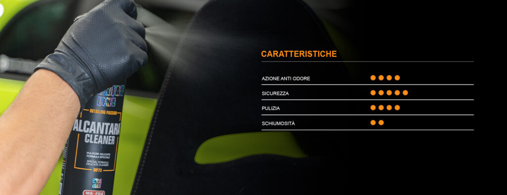 Dopo il trattamento, la superficie trattata con Alcantara® Cleaner apparirà rinnovata, mantenendo la morbidezza e l'effetto cromatico caratteristici dell'Alcantara. La formula speciale del prodotto penetra e dissolve efficacemente lo sporco, anche in presenza di macchie localizzate, senza danneggiare il materiale, prevenendo il rischio di seccature, scolorimenti o aloni.